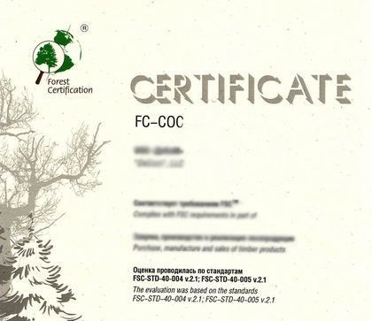 The company was certified according to FSC 100% standard FSC-STD-40-004 v.2.1 and holds certificate no. FC-COC-804521.